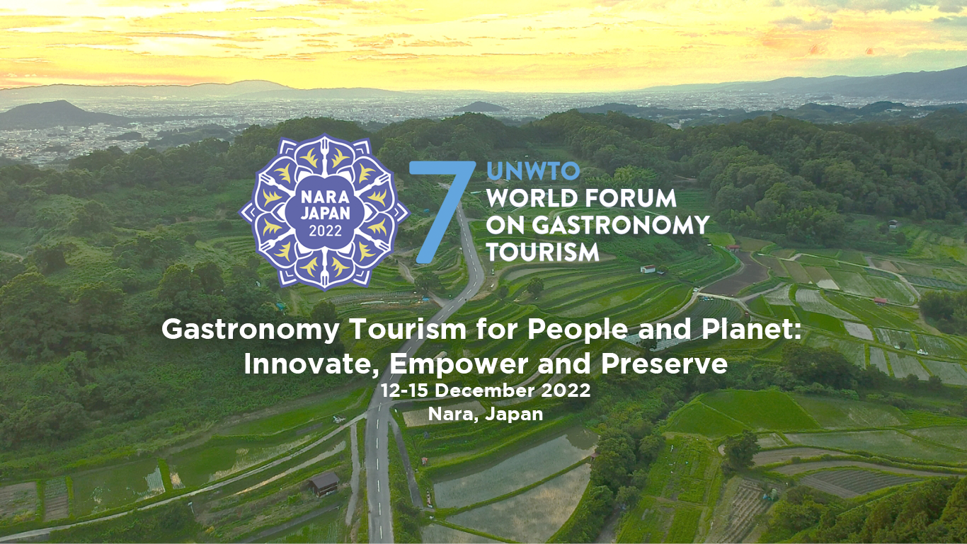 この度奈良で開催される"第7回UNWTOガストロノミーツーリズム世界フォーラム"のオンラインストリーミングプラットフォームへようこそ!フォーラムのテーマは「Gastronomy Tourism for People and Planet: Innovate, Empower and Preserve (人と地球のためのガストロノミーツーリズム:革新し、活躍を推進して、維持する)」です。